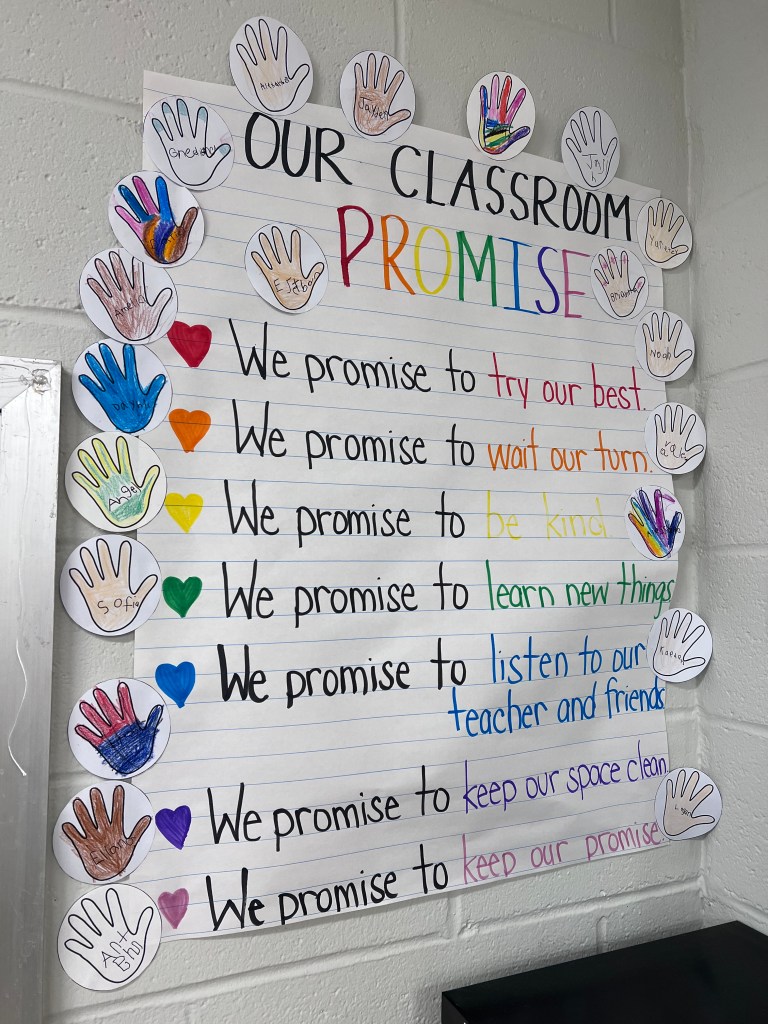 After we read this story we create our classroom promise. We then each color a handprint with our names to mark our promise. We now say it every morning as part of our morning meeting.