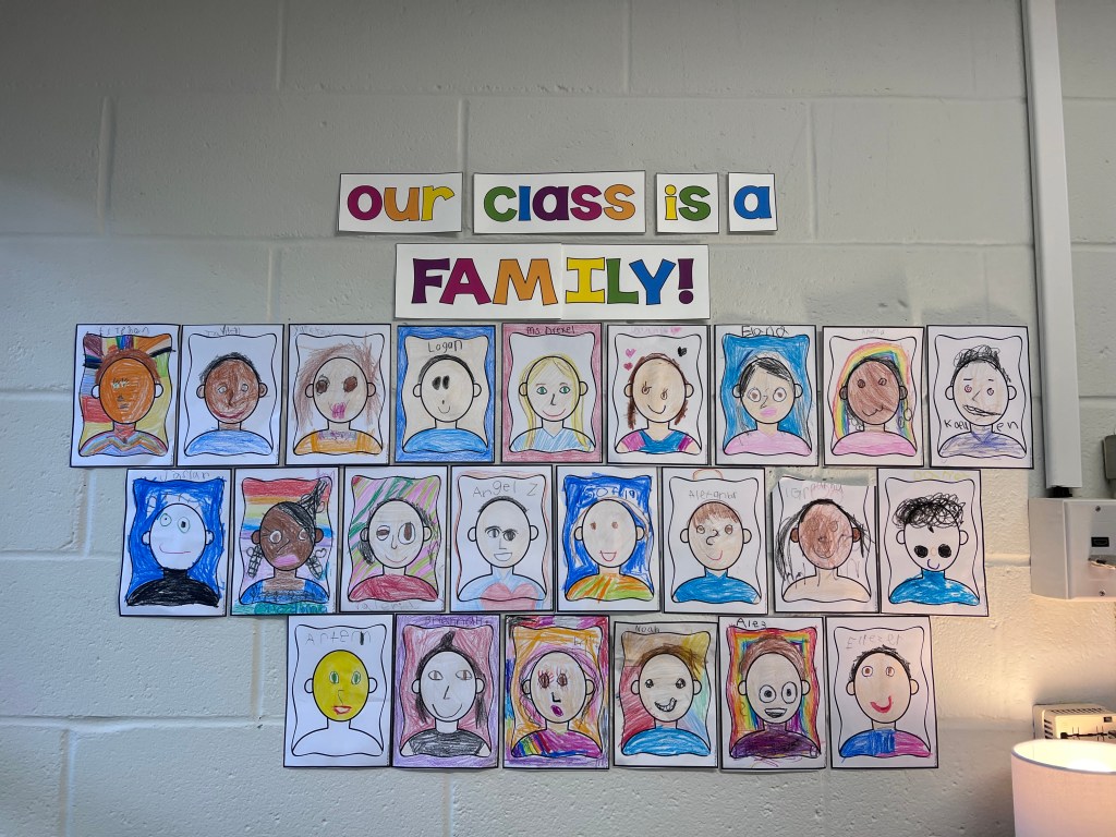 This year, I invited my students to each draw their own portrait and we now will have our class family hanging in our room all year!